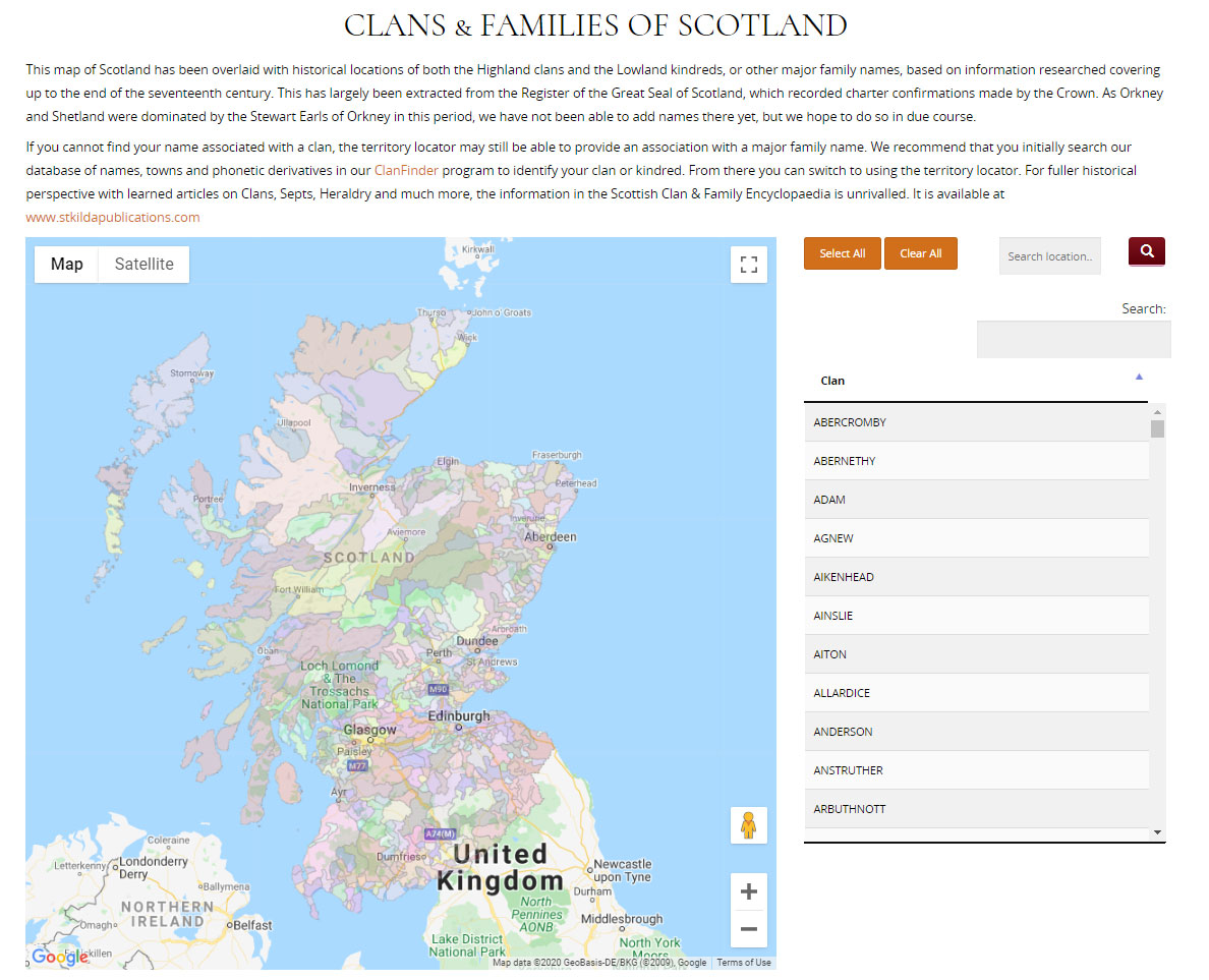 St Kilda offer two clan maps of Scotland. One version is online and can be found here the other is available to buy as a print, by the artist Hugh Dias as part of our Border Art range.
