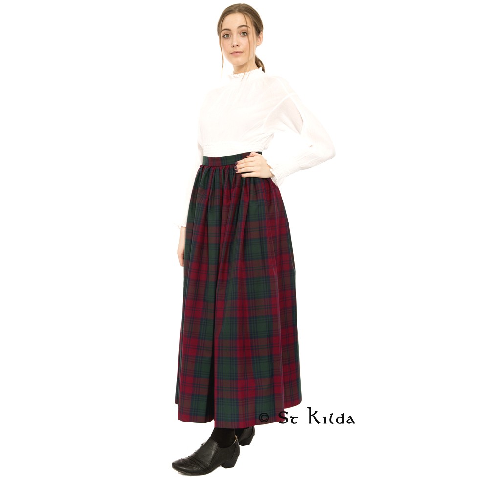 Gathered Long Tartan Skirt
