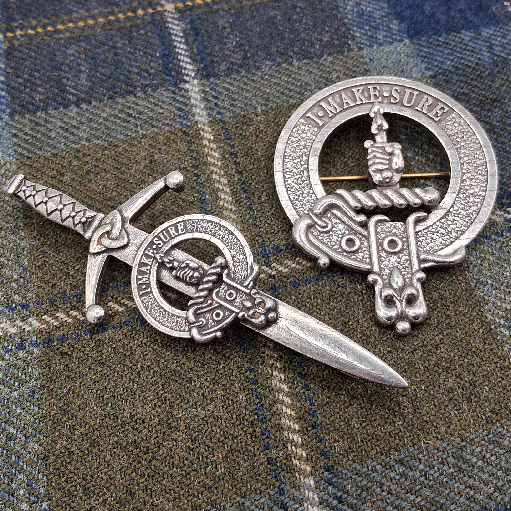 The tartan shown here is Scottish Borderlands, reflecting the Kirkpatricks’ historic heartland in the southwest of Scotland.